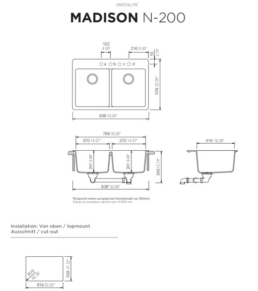 Cut-out size topmount: 818 x 539 mm